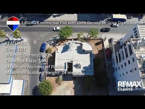This 1,032m2 Commercial property is located in the city of Larnaca, Cyprus, in a highly prominent and strategic area at the junction of Griva Digeni Avenue and Ayias Lavras str, approximately 200 meters north of the Municipal Garden, Municipal Library, and SALINA Park. The plot has a total area of 1,032 square meters and enjoys a large, corner frontage of 63 meters along both roads, offering excellent visibility and accessibility. The property is included within the urban commercial zone Εβ1, designated for mixed-use developments, including commercial and office spaces, with the following planning parameters: