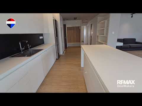 It is fully renovated and features an open-plan dining/living/kitchen area, two bedrooms (both en-suite), a guest toilet, a covered veranda and a balcony.